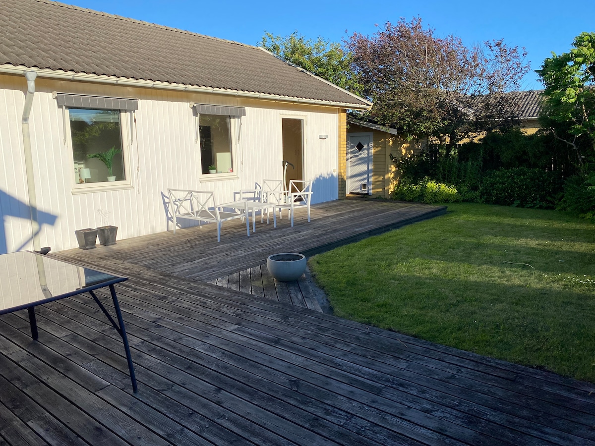 Güzel bahçemizin altında, kendinize ait olan hoş ek binamız bulunmaktadır. Ek bina, büyüleyici ve sıcak bir tarzda yeni yenilenmiştir. Kahvaltı hazırlama imkanı olan bir çay mutfağı bulunmaktadır. Sıcak yemek yapmak istiyorsanız, lütfen başka bir AirBnB seçin. Ek bina orman ve plaja yakındır. Ek bina şehir merkezine 1 km, gıda pazarına, istasyona ve Kronborg'a 1,5 km uzaklıktadır.