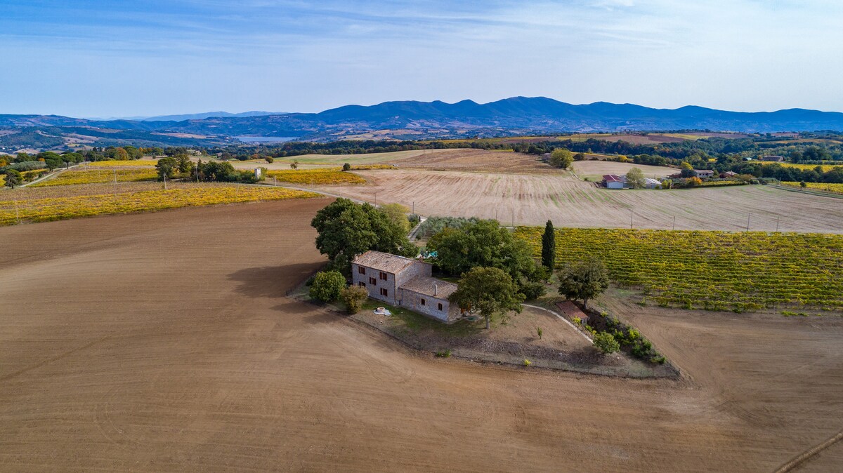 Corbara Gölü manzaralı havuzlu kır evi