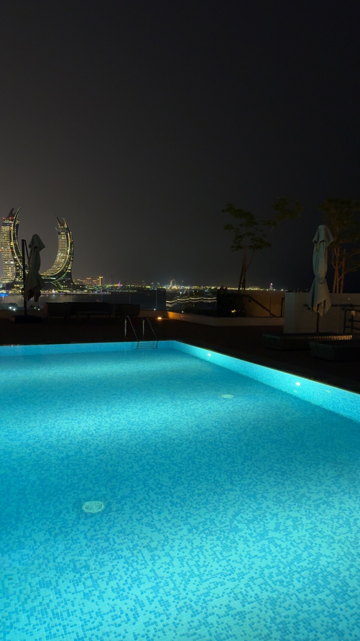 3 banyolu, 2 plaj manzaralı balkonlu, oturma odalı ve kapalı mutfaklı tam mobilyalı 2 yatak odalı daire. Tüm odalar Ay Kulesi'ne bakan güzel plaj manzarasına sahiptir. Bodrum katında otopark mevcuttur - Lusail gece pazarına yürüme mesafesinde ve Vendome Alışveriş Merkezi'ne yakındır. Spor salonu, Sona ve yüzme havuzu tesisleri mevcuttur. Ücretsiz kablosuz internet bağlantısı.