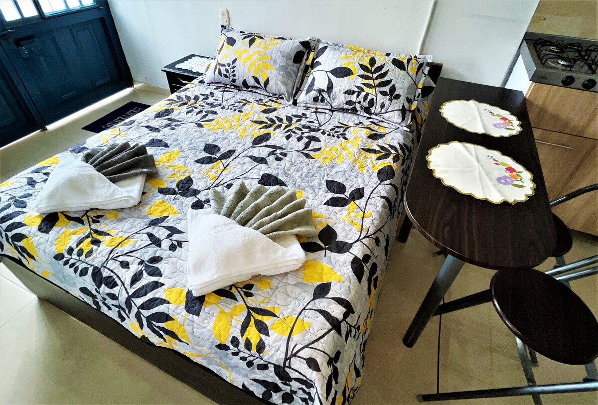 Ayrı girişli MiniSuite stüdyo daire, dinlenmek isteyen bir kişi veya çift için idealdir. Klimalı, işlevsel, aydınlık ve havalandırmalı alan. Çift kişilik yatak, kanepe, donanımlı mutfak, yemek odası, mini bar buzdolabı, tam özel banyo, kablosuz internet bağlantısı, sandalet ve sokağa doğrudan erişim içerir. 📍 Airbnb haritasında gösterildiği gibi sessiz bir yerleşim alanında yer almaktadır. ⭐ Uzun süreli konaklamalar, uzaktan çalışma veya keyifli turizm için önerilir.