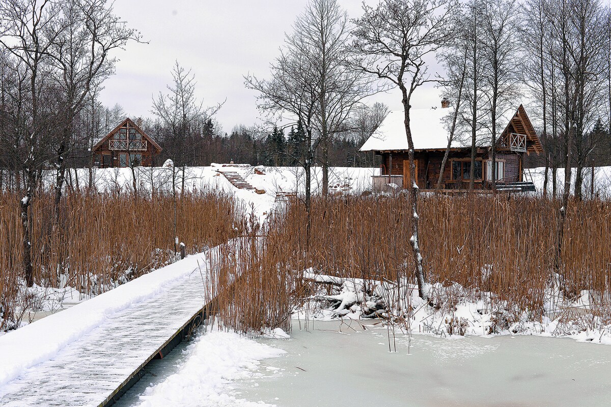 Şehir hayatından kaçmak ve doğayla bağ kurmak isteyen insanlar için ıssızlığın ortasında bir göletin yanında rahat bir kır evi. 2 yatak odası, şömineli oturma odası, mutfak, banyo ve saunaya sahiptir (sauna fiyata dahildir). Ayrıca klima de vardır, bu nedenle ev kışın ısıtılabilir. Oturup ağaçların arkasından gün batımını izlemek için dışarıda bir verandası vardır. Yakınlarda bir göl ve orman var. Aileler ve arkadaşlar için dinlenmek için harika bir yerdir.