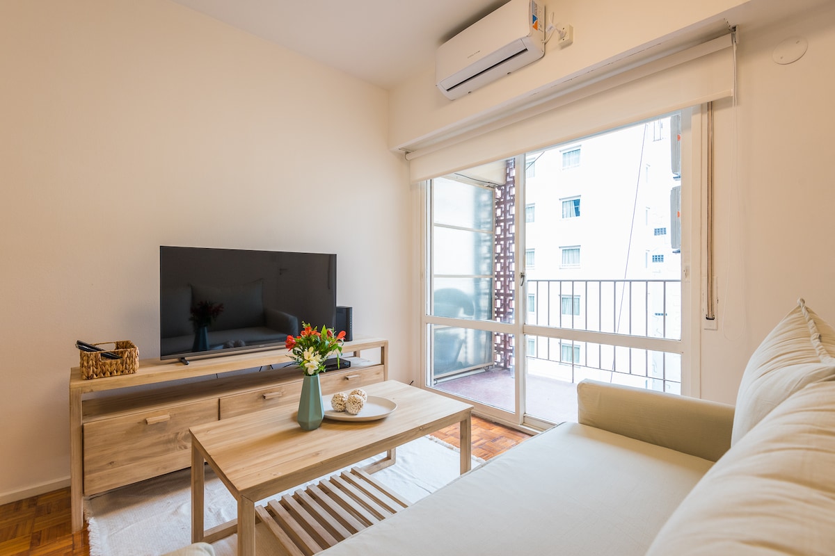 Merkezi konumda Monoambiente • En çok satan seçeneğimiz • 32 inç akıllı TV (SADECE YAYIN PLATFORMLARI İLE). • Çift kişilik yataklı veya ikiz yatak sipariş etme olanağına sahip çift kişilik daire • Tam donanımlı mutfak. • İşlevsel, modern tasarımlı banyo ve mutfak • Konaklamanızda keyif almanız için hoş geldiniz kahvesi ve çayları