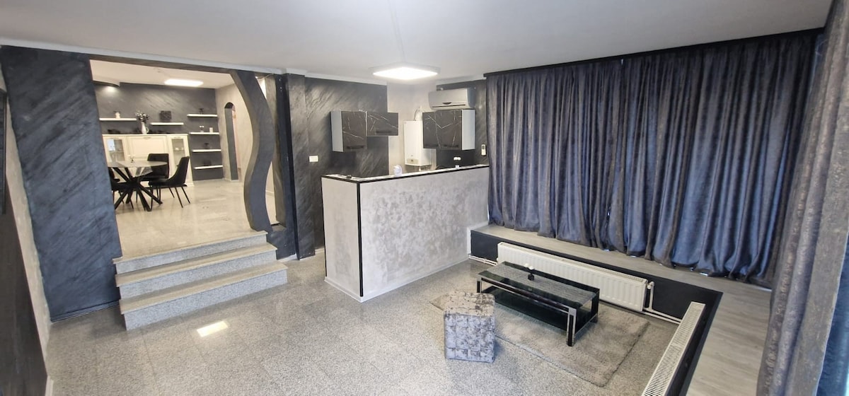 Bine ați venit în apartamentul nostru elegant, situat în inima orașului, unde stilul sofisticat se întâlnește cu funcționalitatea de top. Acest apartament este conceput pentru a oferi oaspeților o experiență de neegalat, punând la dispoziție materiale premium și facilități moderne. Bucurați-vă de o experiență deosebită într-un apartament care combină eleganța cu confortul modern, într-o locație ideală pentru a explora tot ceea ce orașul are de oferit.