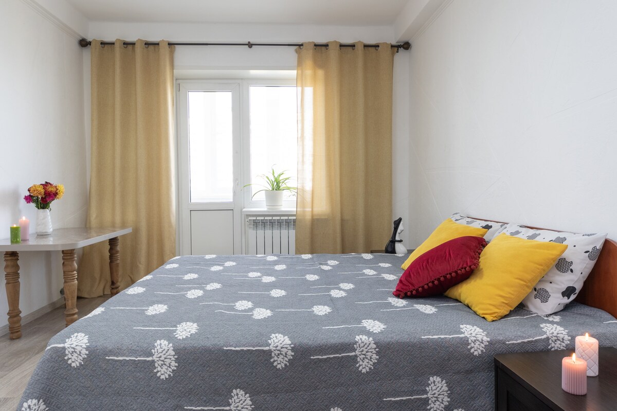 Yeni, ferah, samimi ve çok şık daire (ÇATI KATI). Dairede 2 çift kişilik yatak ve bir çekyat bulunmaktadır. Yeni ev, korumalı ücretsiz otopark, çocuk oyun alanı, stadyum. Daire, konforlu bir konaklama için gerekli tüm cihazlarla donatılmıştır: klima, mikrodalga fırın, ocak, çamaşır makinesi, saç kurutma makinesi, ütü, TV'ler.