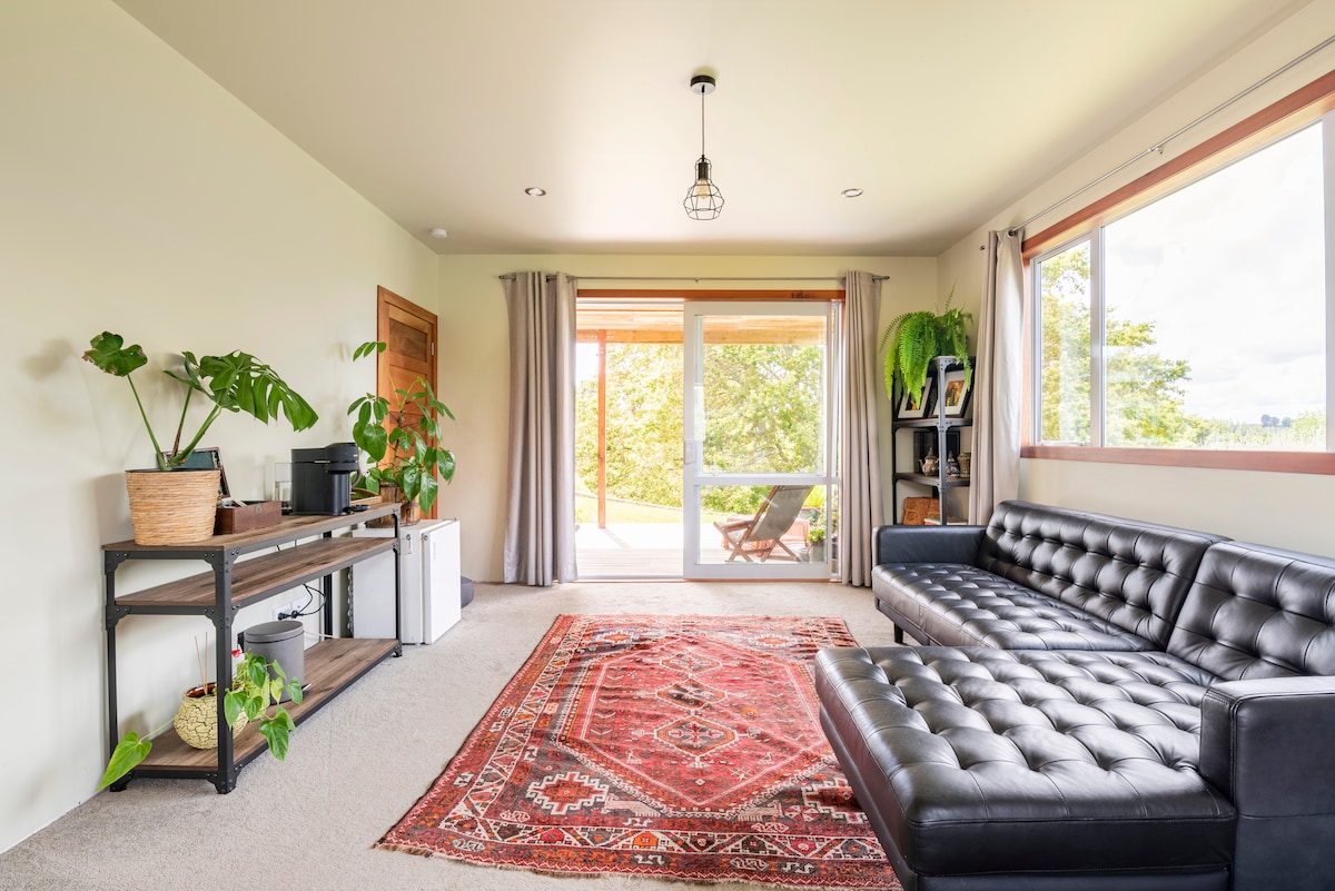 Bu çağdaş mimarinin huzur verici ortamında temiz kır havası soluyun. Evin dışı şık bir endüstriyel estetiğe ve özel bir açık hava banyosuna sahipken, iç mekânı butik tasarım stili, nötr gri tonlar ve ahşap vurgularla dolup taşıyor. Kırsal konaklama, Yeni Zelanda'ya özgü tipik bir köy yolunun aşağısında yer alıyor. Süt çiftlikleri ve kivi meyve bahçeleriyle çevrili bu yerde misafirler, çiftçileri günlük işlerinde görebilir. Traktörleriyle yanınızdan geçerlerse onlara el sallayabilirsiniz.