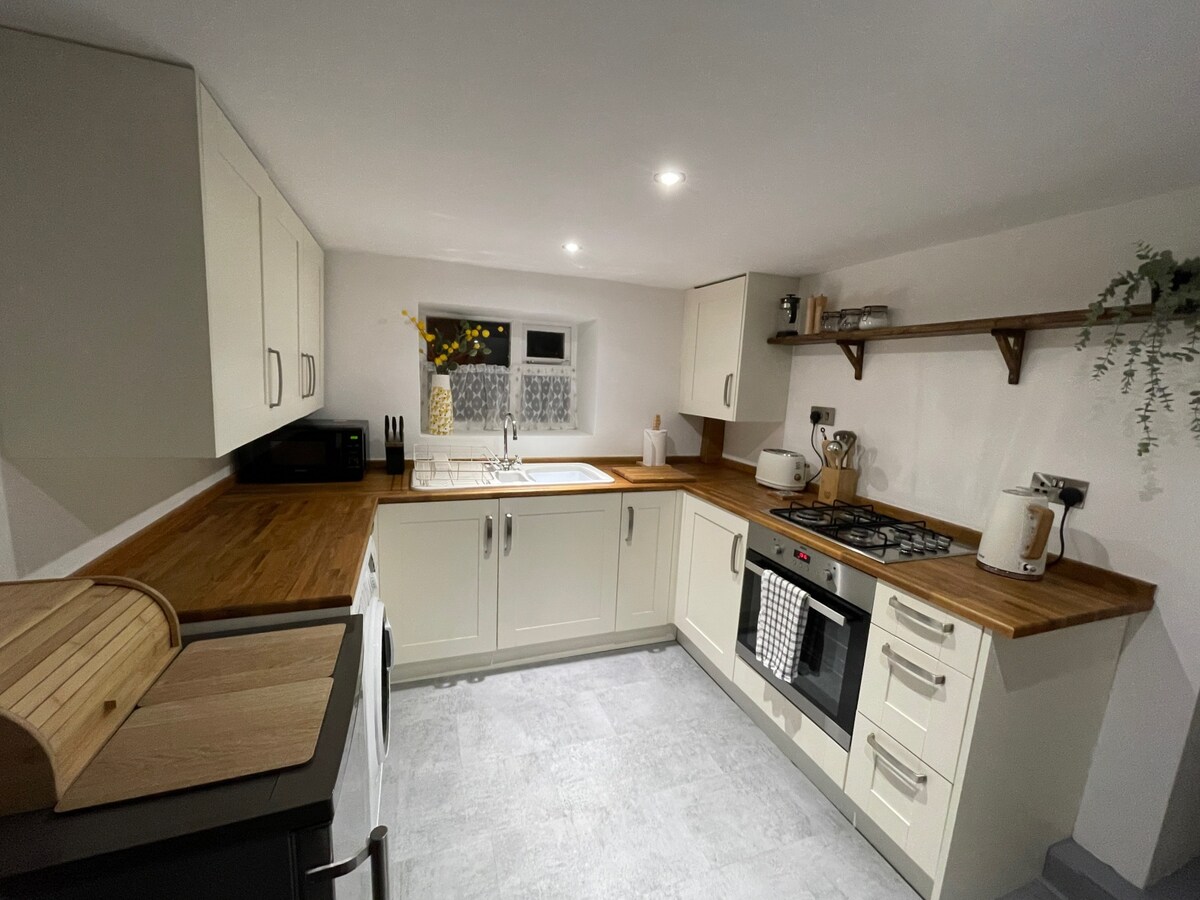 200 yıllık bir kulübede bağımsız, birinci katta bir daire. Süper king yatak veya ikiz yatak olarak 1 yatak odası mevcuttur. Küçük mutfak, mikrodalga fırın/ızgara, tek gözlü ocak, ekmek kızartma makinesi, su ısıtıcısı ve tam boy buzdolabı bulunan ayrı oturma odası. Duşlu banyo. Ücretsiz kablosuz internet bağlantısı. Kulübenin dışında özel, yol kenarı park yeri. İstek üzerine bisikletleri, olta takımlarını, golf sopalarını vb. kilitlemek için güvenli garaj alanı mevcuttur. Yürüyüş mesafesinde iki bar ve kahve dükkanı bulunan güzel, sessiz bir köydedir.