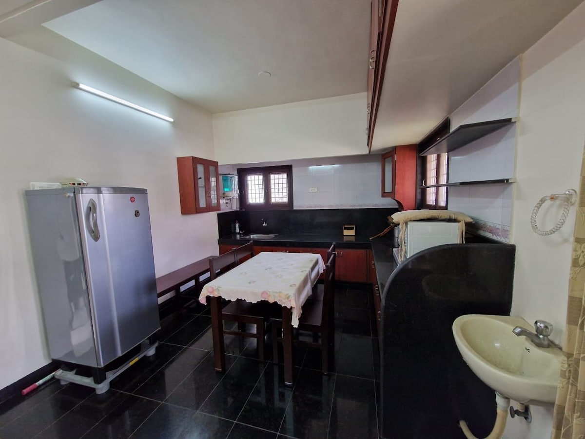 Palakkad kasabasının göbeğinde yer alan yepyeni, özenle tasarlanmış bir stüdyo daireye hoş geldiniz. Bu sakin ve konforlu alan doğal ışık, sıcak iç mekanlar ve huzurlu bir ortamı harmanlayarak konaklamalar için mükemmel bir yer hâline getiriyor. Klima, TV, mutfak gereçleri ve çamaşır makinesi gibi tüm olanaklara sahiptir. Yatak odasında, tercihinize bağlı olarak tek bir büyük yatak olarak düzenlenebilen veya iki ayrı tek kişilik yatak olarak ayrılabilen çok yönlü bir queen boy yatak bulunmaktadır.