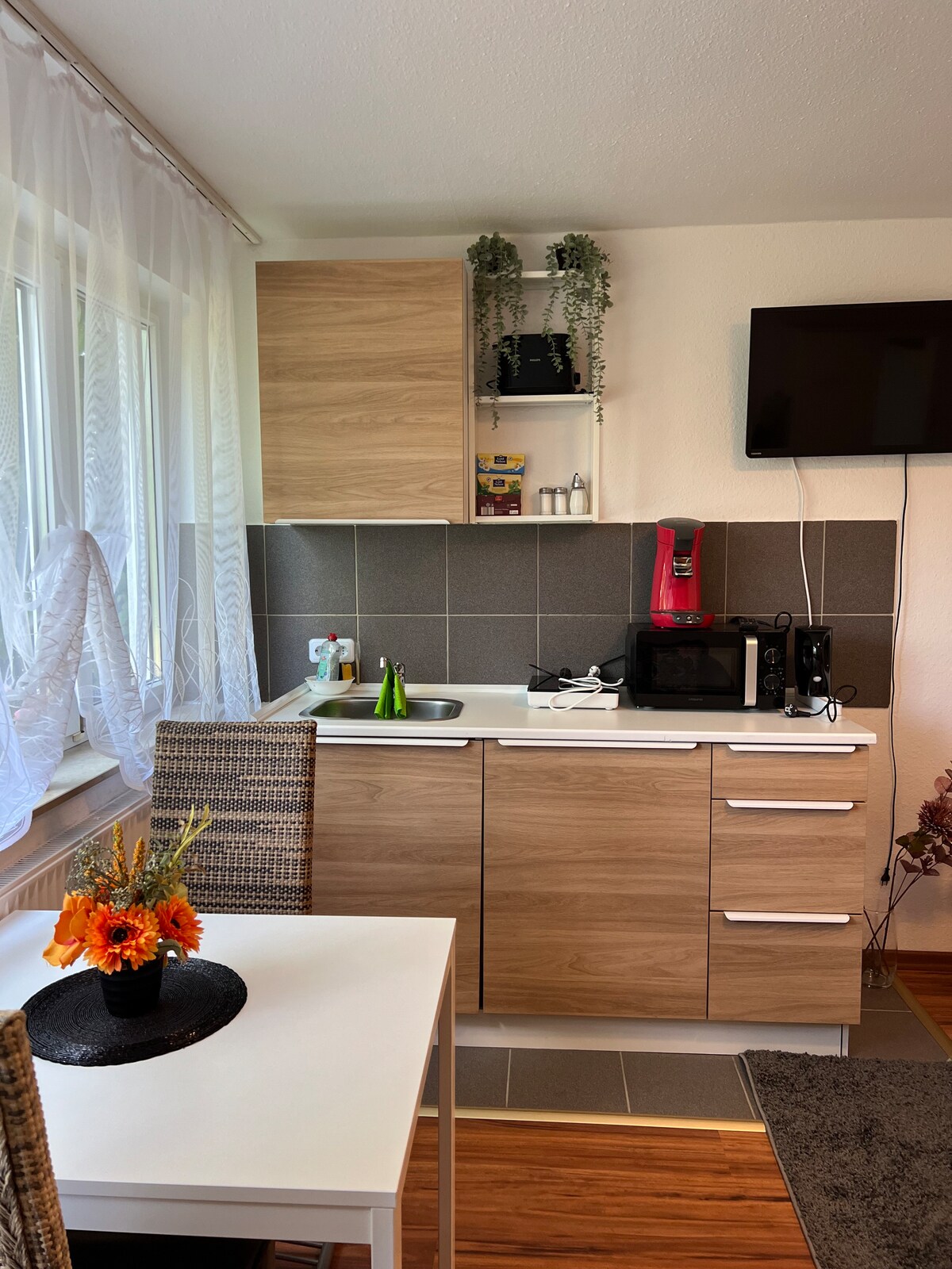 Filderstadt-Bernhausen'de, otoyol, havaalanı/ticaret fuarı Stuttgart yakınında, 2. katta, 28 m2'lik tamamen mobilyalı 1 odalı daire. 90x200 cm yataklı kanepe, yastık, nevresim takımı, tabak çanak, çatal bıçak vb.W-LAN, sokakta ücretsiz otopark. Yakınlarda Stadtwerke şarj istasyonları. S-Bahn ve otobüs yaklaşık 10 dakika yürüme mesafesindedir. Günlük ihtiyaçlar için alışveriş olanakları yürüme mesafesindedir. Aylık ve haftalık kiralama anlaşma ile mümkündür. Sigara içilmeyen ve evcil hayvan dostu daire.