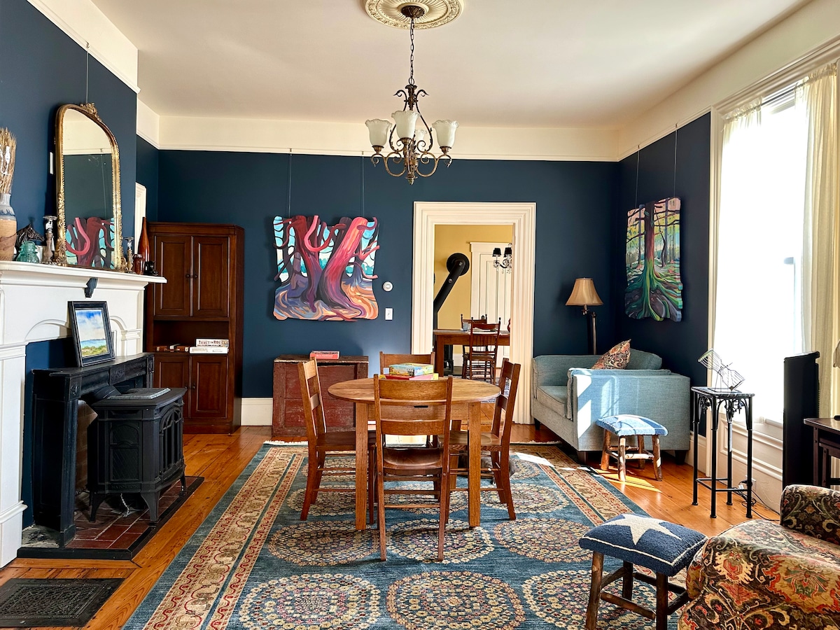 Maine, Belfast'ın büyüleyici sahil şehrinin göbeğinde bir çift için ideal, zarif Paris'ten esinlenilmiş daire. Restoranlara, mağazalara ve güzel sahile/patikaya birkaç adım uzaklıktaki bu şehir merkezindeki konumda şık ve konforlu bir deneyimin tadını çıkarın. Ücretsiz/güvenli gece halka açık otopark 250 fit uzaklıkta. Yatak yapılıyor, masa kuruluyor, Bluetooth özellikli vintage radyo, oyunlar ve akıllı TV var.
