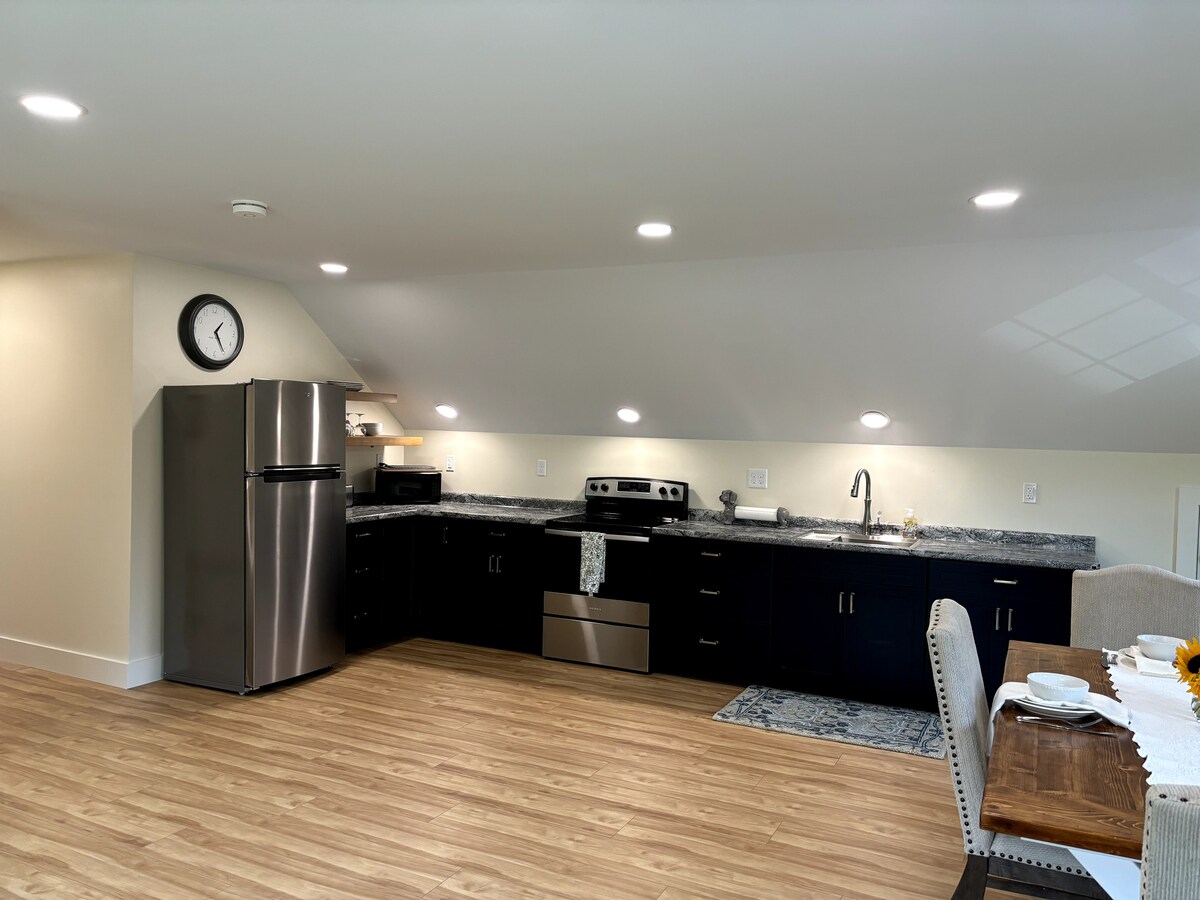 Mill River'a ve üstü kapalı bir köprüye bakan, özel banyolu, aydınlık, tenha, ikinci katta tek odalı süit. Görünürde komşu yok ama kasabaya yakın. Arka bahçede sinekli olta ile balık tutun, ateş çukurunun etrafında oturun, sonbahar yapraklarının tadını çıkarın, yürüyüş yapın ve kayak yapın. Asma köprü ve Appalachia uzun patikası çok yakındır. Üç kayak merkezine yakın: Killington, Okemo ve Pico. Köpekler hoş karşılanır ve sevilir, koşmak için bol alan vardır. Rahat queen boy yatak ve kanepe.