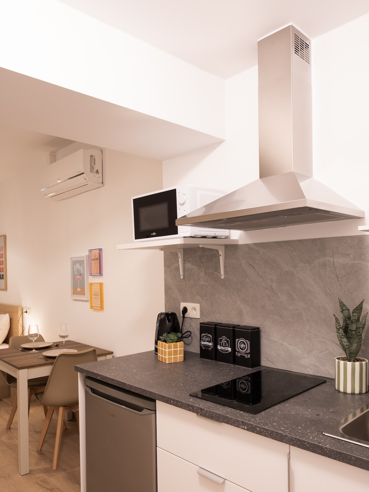 Tamamı mobilyalı kiralık mekânlarda hem mutfak hem de bir ay veya daha uzun bir süre boyunca rahatça yaşamanız için gereken her türlü olanak bulunur. Devren kiralamaya mükemmel bir alternatif.