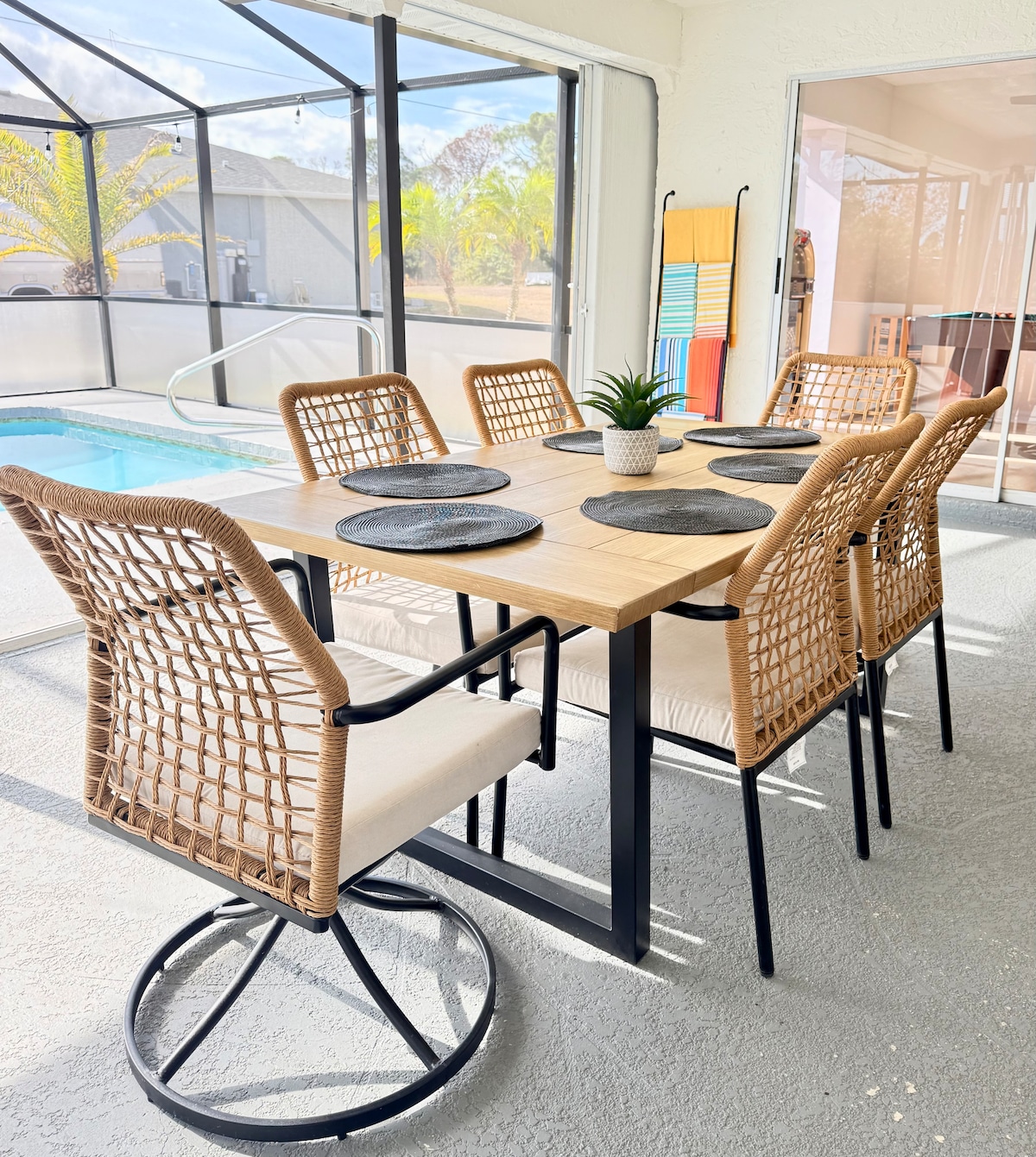 Dinlenme ve maceranın beklediği NW Port Charlotte'taki bu büyüleyici mevsimlik kiralık yere kaçın! Kuzeybatıya bakan tuzlu su havuzu ve spa (isteğe bağlı ek ücret karşılığında elektrikli ısıtıcı) ile nefes kesen gün batımlarını izlerken gevşeyebilirsiniz. Lanai'deki açık hava mutfağı, şömine ve TV bu mekânı rahat akşamlar veya canlı buluşmalar için mükemmel hale getiriyor. Evin pizza fırını, rahat açık havada yemek için benzersiz bir dokunuş katıyor (kendi sorumluluğunuzda kullanın).