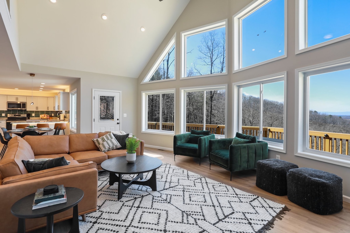 ★ Modern LUXE kulübe, 4400 sf Shenandoah Ulusal Parkı, Skyline Drive ve Skyline Mağaraları ★5 dakika En yakın patikalara ★4 dakika: Dickey Ridge Trailhead ★2 dakika Kano, hortum ve kano - 2 dakika ★Atari salonu ve masa oyunları, kitaplar, 2 metrelik bilardo masası ★Verandalar salıncak ve jakuzi Yakacak odunlu ★ateş çukuru ★2 kişilik sauna ★ Gazlı açık hava ızgarası ★2 Şömine (seç.) ★Akıllı TV'ler (90 inç dahil) ★Hızlı kablosuz internet bağlantısı Baharatlı ★iyi donanımlı mutfak ★ Küçük köpekler için inşa edilmiş tamamen kapalı arka bahçe