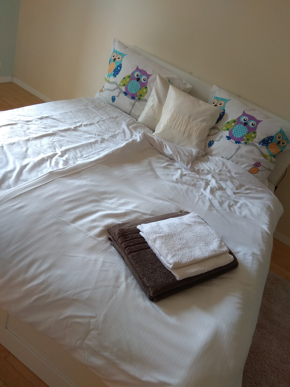 Very nice apartment. There is a kitchen with a living room, bedroom, bathroom and a balkony. Behind the building there's a small forest as well as a nice park. Around 200 m from the appartment there's a shopping mall and a cinema. For guest use there`s a undergrung car park with dedicated place. In the kitchen for comfort f guest there are basic kitchen staff like coffee, tea, sugar, salt, oil, spices etc... Night silence applies between 22.00-06.00 so it`s not adequate for parties.