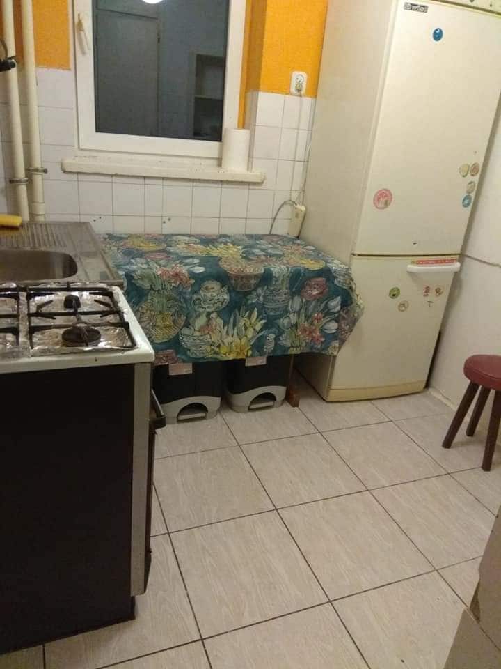 Located in a pre-war tenement house. There is a small lift. The windows of the apartment overlook the courtyard, making it reasonably quiet as it is very city center. The room with an equipped kitchenette is fitted out with a fold-out sofa bed 140 by 200cm, 90 by 200cm and 70 by 200cm mattresses on the mezzanine, a table, two chairs, and a wardrobe. Own bathroom with a shower and a w.c.