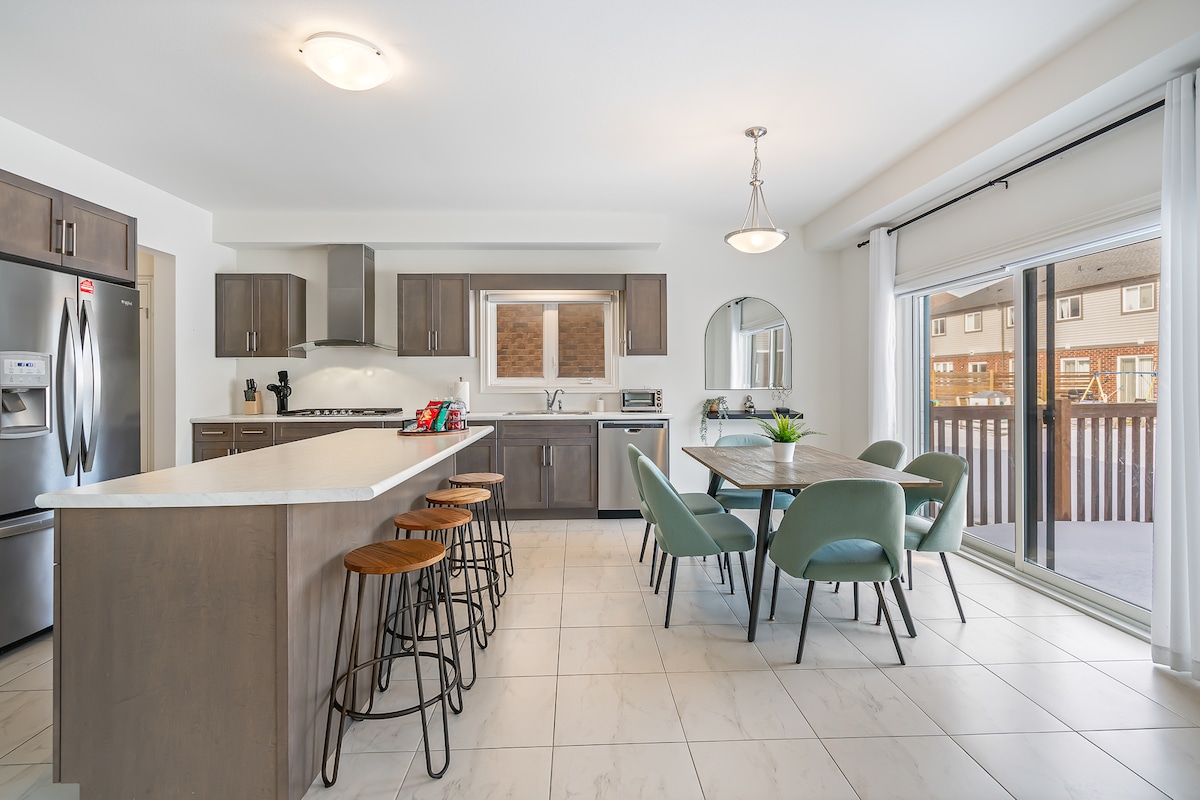Rahatlayın ve evinizden uzaktayken konfor ve rahatlama için tasarlanmış evinizin keyfini çıkarın! Lezzetli kahve barıyla kendinizi şımartın! Kahve kapsülleri ve öğütülmüş kahve dahildir. Ayrıca şunlar da dahildir: şeker, tatlandırıcı, balkabağı ve tarçın baharatı, şekerleme ve tarçın çubukları! Niagara Şelaleleri'ne sadece 15 dakika, Niagara-on-the-Lake'e 30 dakika mesafededir. İyi donanımlı bir mutfak, 3 yatak odasının tümünde TV ve oturma odasında 65 inç TV bulunmaktadır. Konaklamanız sırasında enerjinizi toplayın ve gevşeyin.