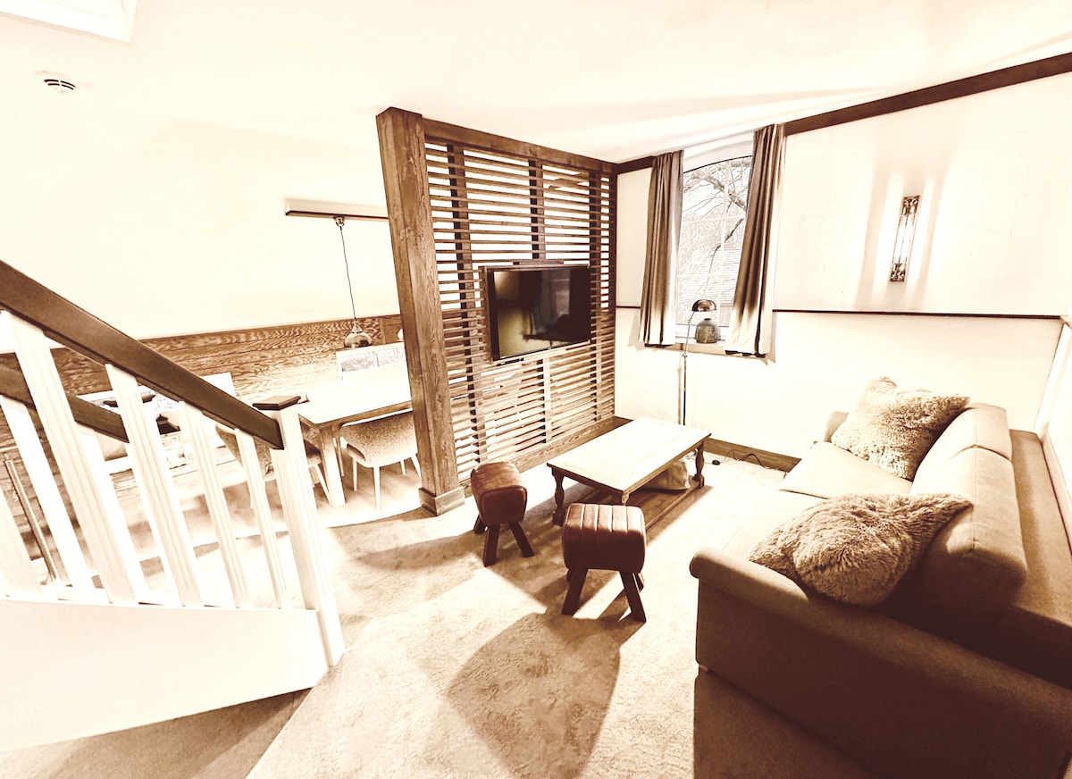 Günlük temizlik ve rezervasyon yapılabilir kahvaltı hizmeti ile 75 metrekarelik lüks otel süiti. Mobilyalar ve mobilyalar arzu edilecek hiçbir şey bırakmaz. Özel özellikler arasında oturma odasında harika bir elektrikli şömine ve kendi tam otomatik kahve makinesi olan harika bir mutfak yer alıyor.