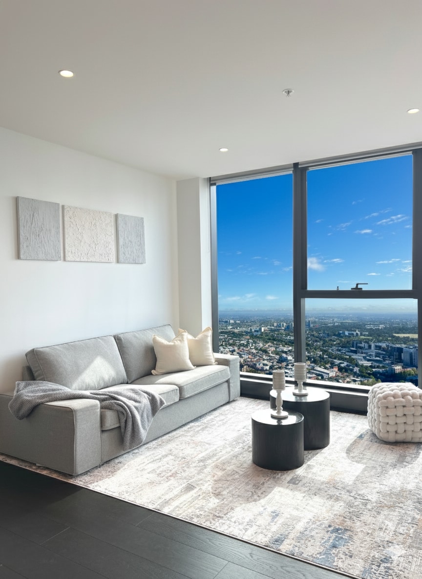 Welcome to our stunning, newly decorated apt on the level 57, offering breathtaking views and an abundance of natural light. Unwind in this tranquil, chic space. Conveniently placed in a free tram zone, tram station is right at your doorstep. Melbourne's iconic QV Market is just a stone's throw away. RMIT is a short 5minute walk, and Melbourne University is a mere 10minute stroll. This prime location is surrounded by Melbourne's finest specialty cafes & restaurants. An ideal urban oasis awaits!🤩