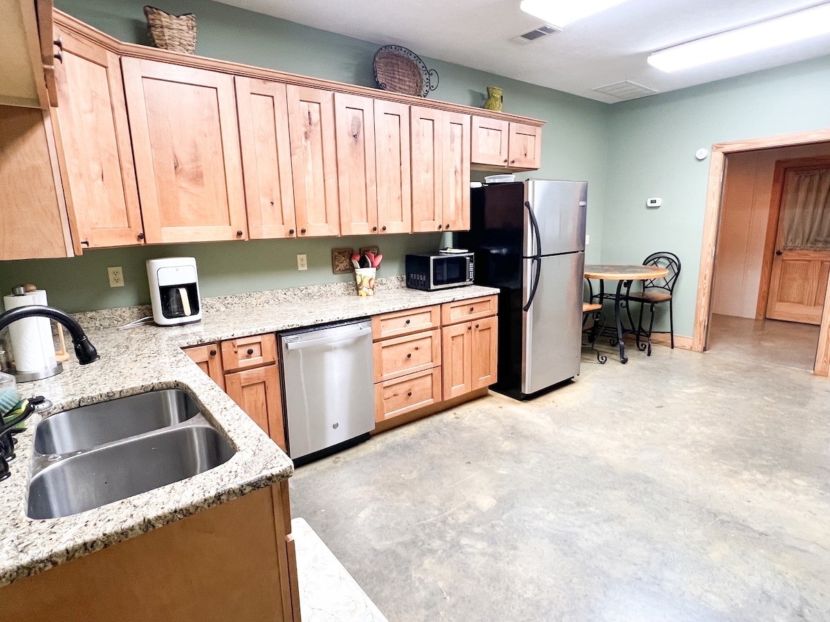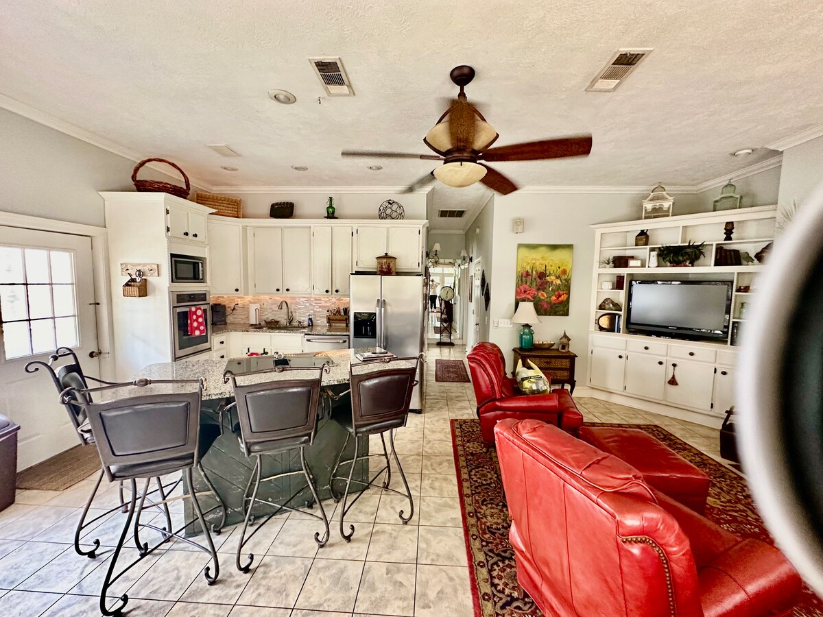 Bu huzurlu konaklama yerinde ailece dinlenebilirsiniz. Bu yeni tadilat yapılmış bir evdir. Üç yatak odası, 1200 fitkare, 1,5 banyo, artı iki araba garajı. Mahremiyetiniz için arka bahçede çit vardır. Ana yatak odasında bir çift kişilik yatak, ikinci yatak odasında tam boy yatak ve küçük yatak odasında iki tek kişilik yatak bulunmaktadır. En yakın Dollar General'a 2,5 mil, Walmart'a 4,5 mil uzaklıktadır.
