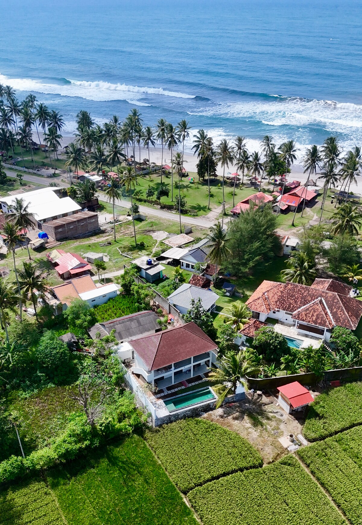 Bu iki yatak odalı villadan modern lüks ve nefes kesici manzaraların keyfini çıkarın. Özel bir havuzu, bir yanda güzel pirinç tarlalarına, diğer yanda Mandiri Plajı'na bakan geniş ikinci kat yatak odalarına sahip açık planlı bir yaşam alanına sahiptir.