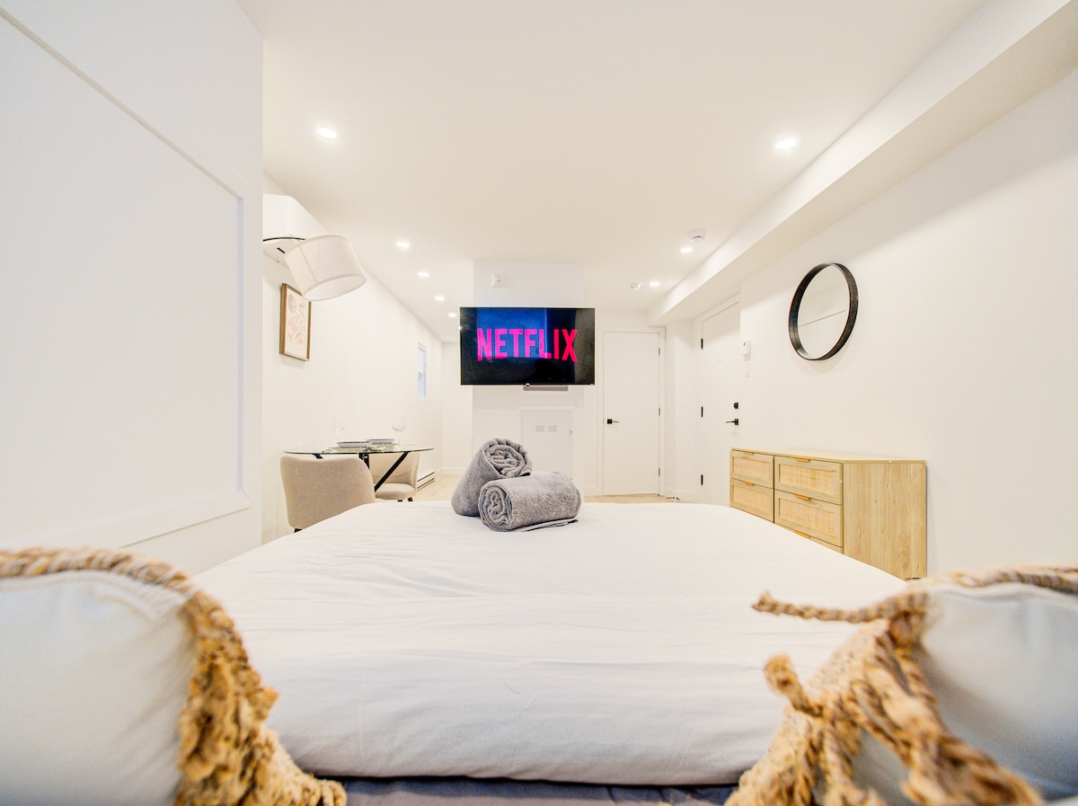 Şehrin göbeğinde konaklamanızın tadını çıkarın! Doğrudan Bell Center erişimi ile yepyeni TDC 2 şehir merkezi lüksü! Kendi özel balkonu olan tam mobilyalı ve donanımlı tek yatak odalı dairemizde konforun keyfini çıkarın! Konaklamanız sauna, havuz, spor salonu, skylounge, oyun odası, salon ve birden fazla barbekü olan terasa erişimi içerir. Ücretsiz yeraltı otoparkı, metro sadece birkaç dakika uzaklıkta. Dışarı adımınızı atmadan şehri keşfedebilirsiniz. Ayrıca, mükemmel konaklama için ücretsiz Netflix ile rahatlayın.