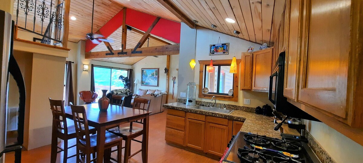 Rim View: Ayrılmanın tek nedeni tekrar gelebilmenizdir. Ev konforunun keyfini çıkarırken her pencereden ve etrafını saran verandadan nefes kesici manzaraların keyfini çıkarın. 3 yatak odası, 2 banyo ve geniş açık alan Rim View'u 6 kişiye kadar mükemmel hale getirir. Akşam yemeğini gurme mutfağında yapın veya Rim'in üzerinde batan güneşi izlerken verandada ızgara yapın. Dağdan aşağı inebilir, Pine'ın sunduğu her şeye sola dönüş yapabilirsiniz. Pine, Valley'den arabayla 2 saatten kısa bir mesafede.