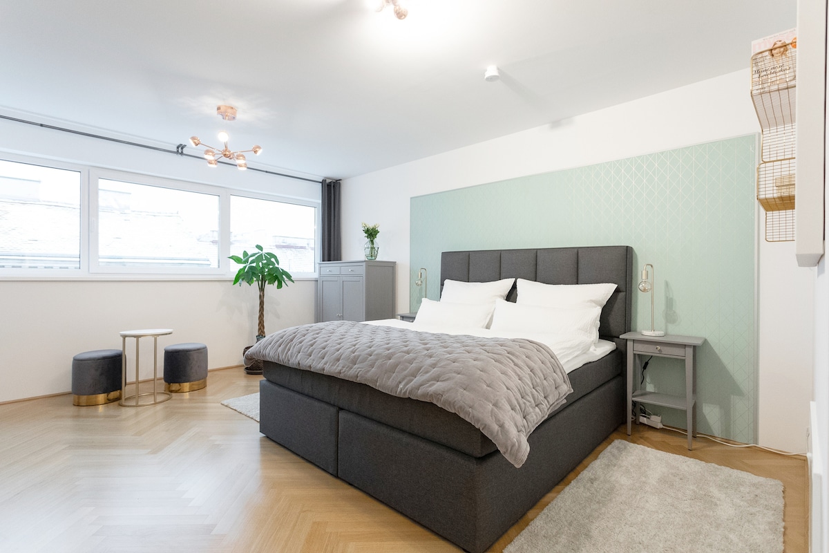 Stylish design apartment with a quiet courtyard balcony – perfect to relax after a day exploring Vienna. Enjoy modern interiors, air conditioning, king-size bed, Smart TV with Netflix and fast Wi-Fi. The fully equipped kitchen is ideal for longer stays, while the renovated bathroom adds hotel-level comfort. Just 2 minutes to the metro, 10 minutes to the city center. Supermarkets, cafés and restaurants nearby. Perfect for couples, business travelers and Vienna explorers.