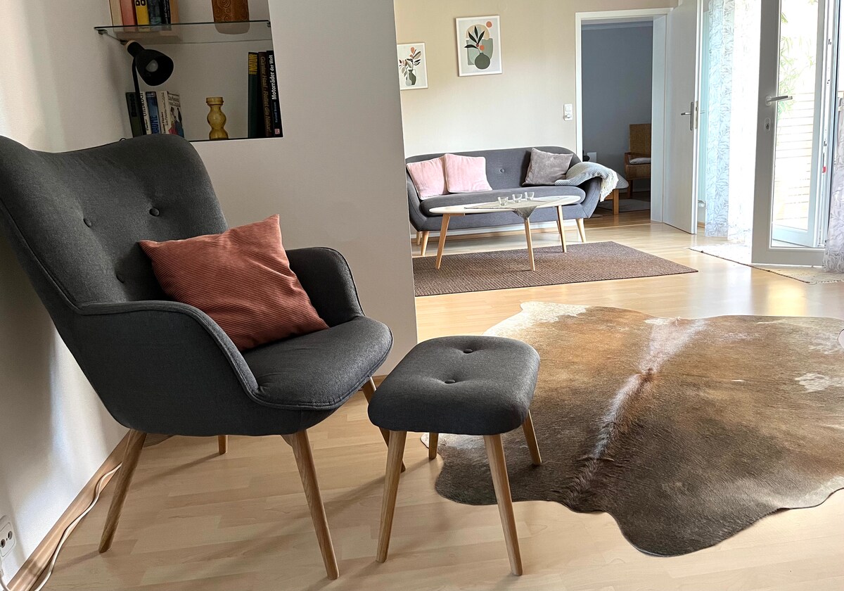 Sevgiyle döşenmiş kayınpederimize hoş geldiniz. Yaklaşık 40 m²' de, iki kişi için mükemmel olan aydınlık, şık tasarımlı bir inziva yeri sizi bekliyor. Huzurlu bir konum, ancak iyi bağlantıları var: Buradan tüm önemli noktalara kolayca ulaşabilirsiniz **Olanaklar :** - Yaşam alanı: 40 m² - Kırsala bakan teras. - Tam donanımlı Mutfak - Konforlu çekyat. - Ücretsiz kablosuz internet erişimi. • Kahve makinesi - Çamaşır makinesi.