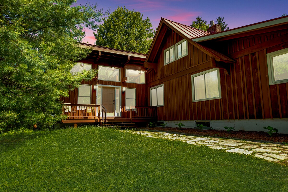 Mount Snow'daki Riverhouse dağdan 1 mil uzaklıktla 2 dakika) veya ÜCRETSİZ MOOver'a binin. YENİ KLİMA. Bu rahat kulübe açık ana kat planına sahiptir ve 3 yatak odası, 2 banyo, çalışma odası, odun şömineli oturma odası ile 6 kişiyi rahatça barındırır. Çamaşır makinesi/kurutucu, oyun masası, bahçe oyunları, gazlı ızgara, yüzme deliği olan bir nehre bakan teras, özel ateş çukuru alanı, gizlilik çiti. Rt 100'e kolay giriş/çıkış - Restoranlara/bira fabrikasına yürüyüş. Ön verandadan/avludan dağ manzarası. Whittingham Gölü'ne 15 dakika.