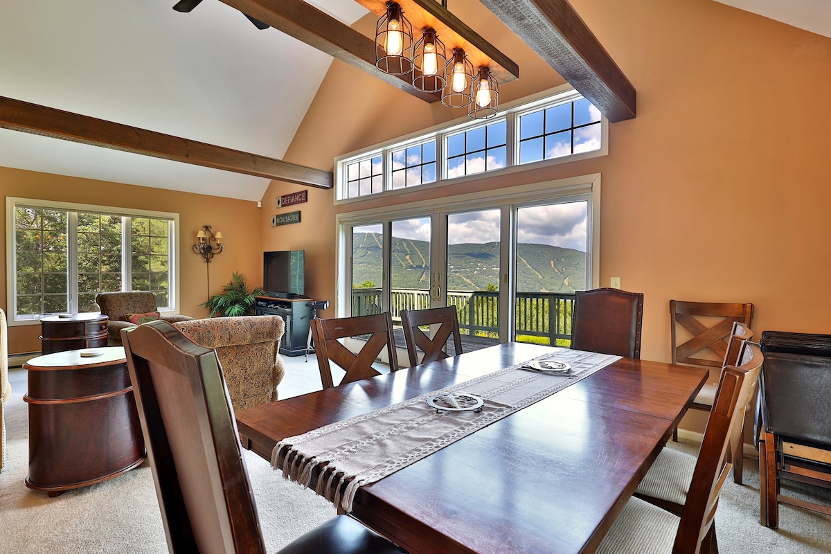 Grand View Lodge Ski Retreat'e hoş geldiniz! Bu 3 yatak odalı/2 banyolu konut/sıra ev, üç geniş yaşam katı sunar ve muhteşem Yeşil Dağlar manzarasına sahiptir! Dört mevsim verandasında bir fincan kahve veya bir kadeh şarapla (kullanmanız için bardaklarımız var!) dinlenin ve kayak, yürüyüş, gezi veya yaprak izleme gününden sonra manzaranın veya propanlı ızgaramızda barbekünün tadını çıkarın. Evcil hayvan dostu değiliz. Lütfen durumunuzu bize önceden bildirin.