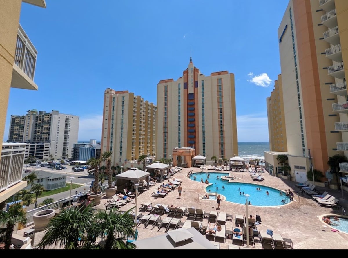 Harika okyanus manzaralı muhteşem oda!! Myrtle Beach'in göbeğinde bulunan Landmark Oceanfront Resort, olmak istediğiniz yerdir! Family Kingdom eğlence parkı, Sky Wheel, Boardwalk, Broadway at the Beach, havaalanı ve çok daha fazlasına yakın. Açık ve kapalı ısıtmalı havuzlar, tembel nehir, çocuk alanı, jakuziler ve plaja erişim. Otelde ayrıca fitness merkezi, atari salonu ve küçük bir dükkan bulunmaktadır. TATİL KÖYÜ ÜCRETİ YOK! ÜCRETSİZ PARK YERİ! Plaj sandalyeleri ve sörf tahtaları sağlanır