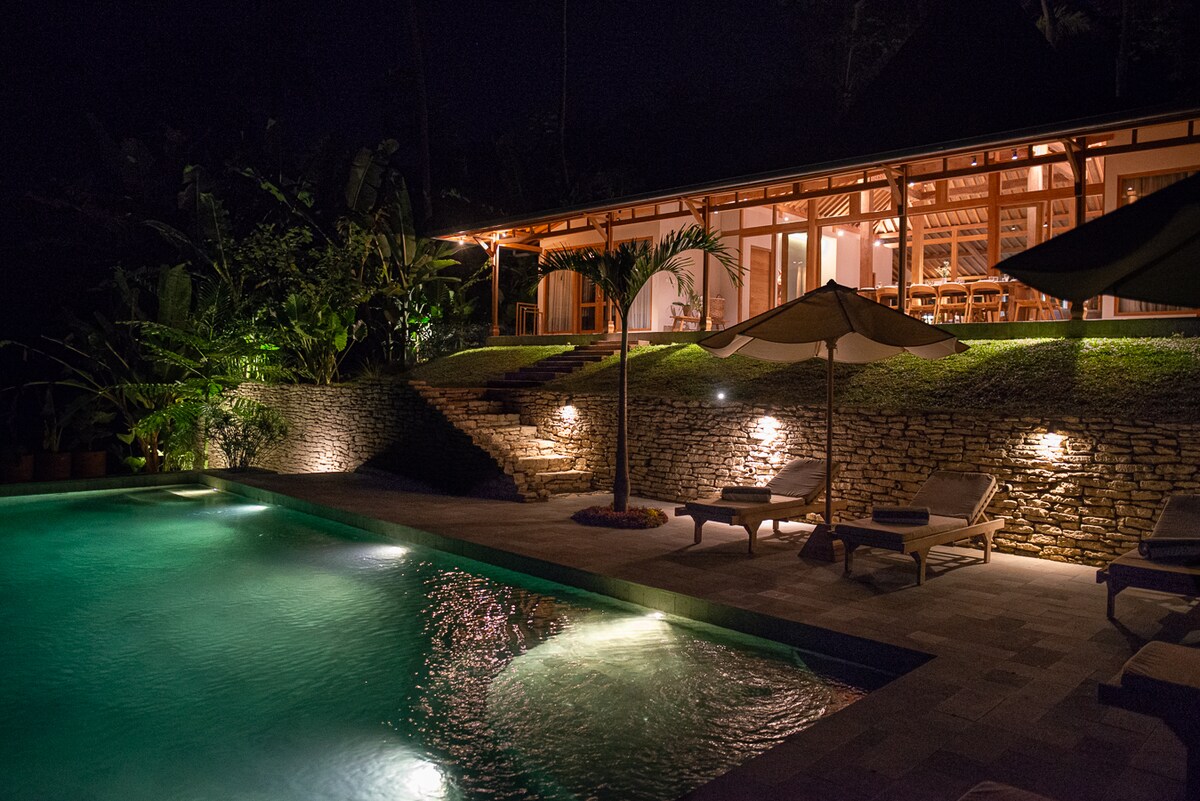 Bu benzersiz ve sakin evde mutlu olun ve rahatlayın. Yeşil Vadimizde nefes kesici manzaralar ve Lotus Mio Restoranına sadece birkaç adım uzaklıkta. Bu rahat 2 katlı Forest Villa House özel havuz sunuyor. Aynı katta mutfak, banyo ve dışarıdaki tropikal terasa bağlanan rahat bir oturma odası bulunmaktadır. Üst katta klimalı bir uyku odası vardır. Her yerde iyi kablosuz internet bağlantısı. Yogyakarta'nın güneyindeki bu romantik orman evi, YIA Havalimanı'na 1 saat uzaklıktadır ve Borobudur'u ziyaret etmek için uygundur.