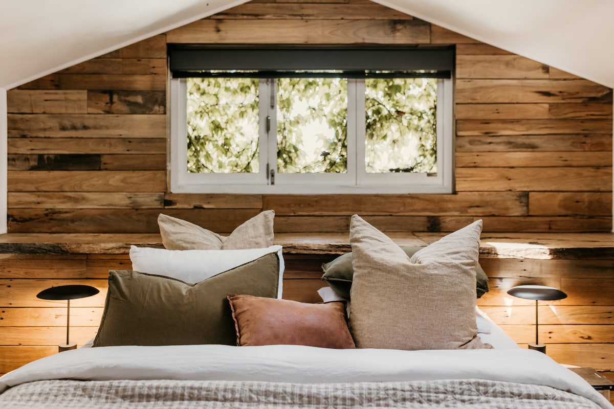 Atmosferik kulübemiz sakız ağaçlarının arasında, kuş cıvıltılarıyla çevrilidir. Adını mülkü bizimle paylaşan Gububurras'tan (Kookaburras) alan bu yer, kahve içmek için Mount Macedon köyüne sadece on dakika yürüme mesafesinde veya şaraphaneleri, köy pazarlarını ve orman yürüyüş yollarını bulmak için kısa bir sürüş mesafesindedir. Alternatif olarak, daha serin aylarda ateşin yanına kıvrılıp okuyabilir veya ateş çukurunun yanındaki terastan manzaranın tadını çıkarabilirsiniz. Guruburra'nın misafirlerimiz üzerindeki sakinleştirici etkisi neredeyse hemen görülür.
