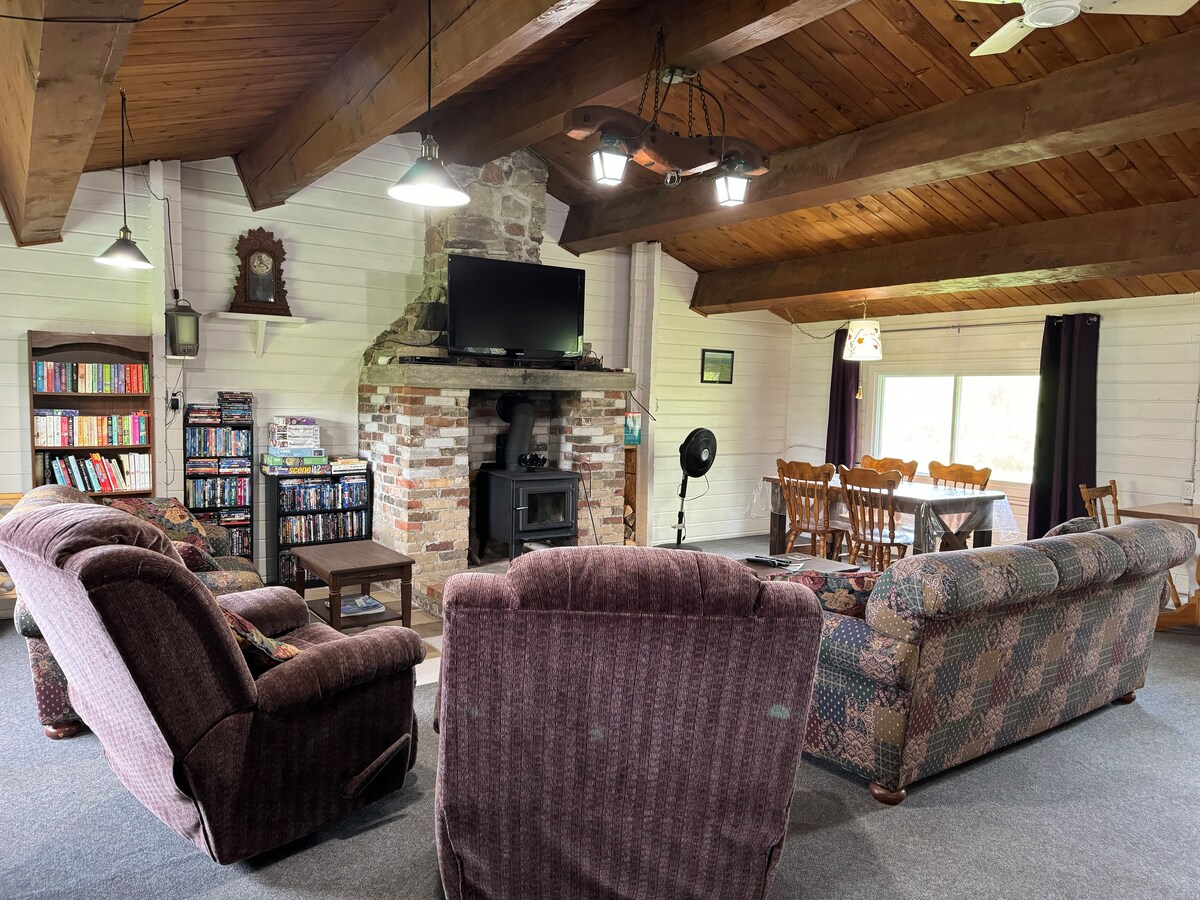 The Clubhouse is located on a large part treed property in the Kawarthas. Bu mülk, tepenin altında Stoney Gölü'ne erişmek için bir iskeleye sahip bir göl arsası içerir. McCracken's Landing veya Gilchrist Körfezi'nde tekne lansmanlarına yakın bir konumda yer alan Stoney Lake, Trent Kanal Sistemi'ne erişim sunuyor. Bir pedallı tekne, 2 kano ve bir kano mevcuttur (misafirler tüm deniz araçlarında gerekli olduğu için kendi can yeleklerini temin etmelidir)