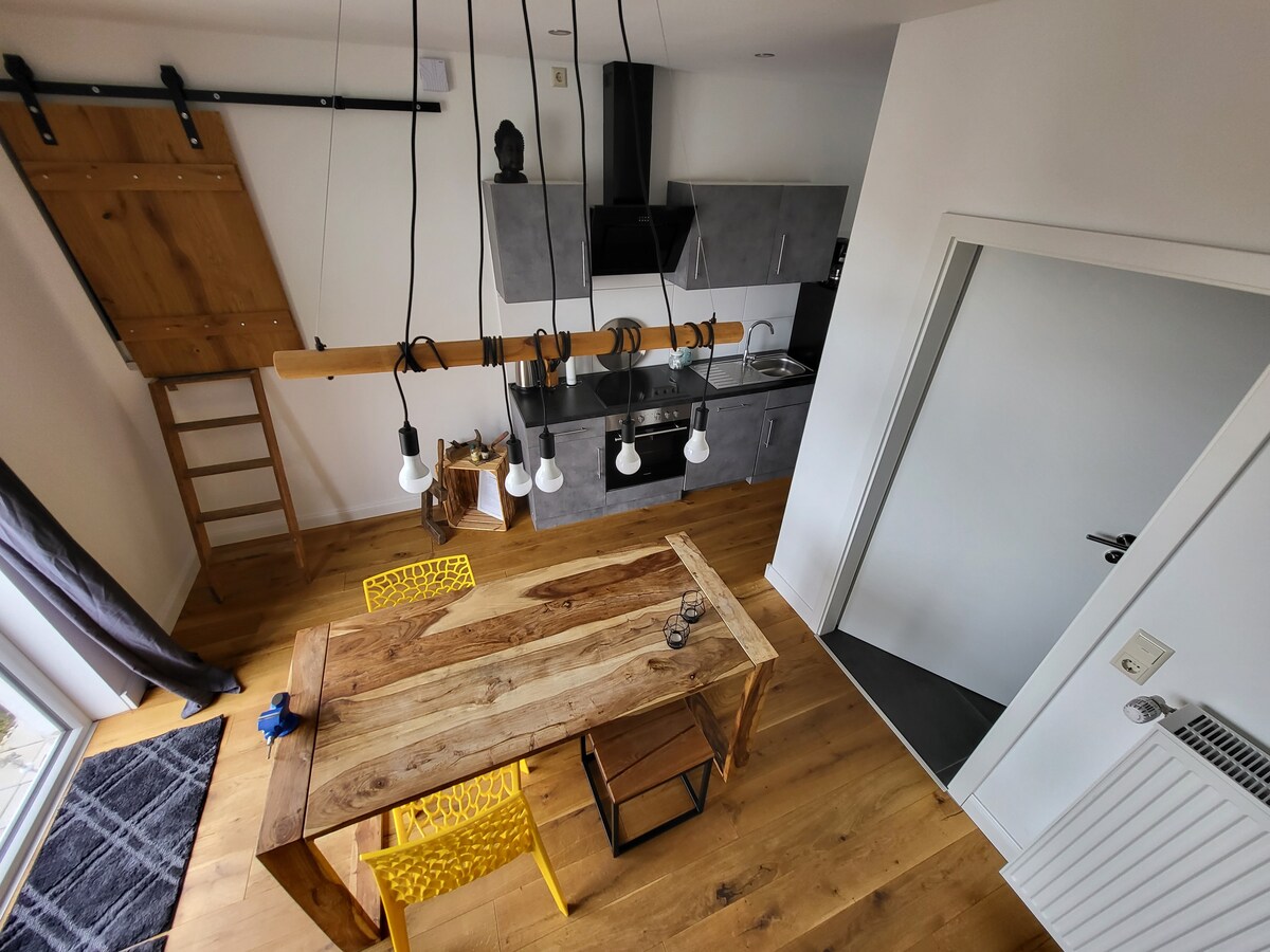 Tatil çatı katı Ottos Werkstatt, sauna fıçısı ve bahçe