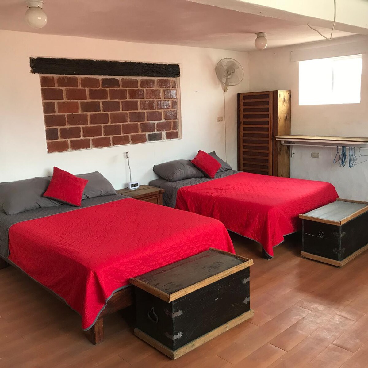 Es un loft de dos cuartos rústicos, con varias paredes en piedra, baño cómodo, un pequeño closet, una mesa con silla para ver la televisión, una mesa con dos sillas para comer o trabajar. Posee buena iluminación y ventilación, frigobar, horno de microondas, cafetera y una parrilla de inducción (o si lo prefieres eléctrica) así como utensilios para cocinar y comer. Esta dentro del patio de una casa antigua con plantas y flores propias de la región de Xalapa y pueden hacer uso del patio.