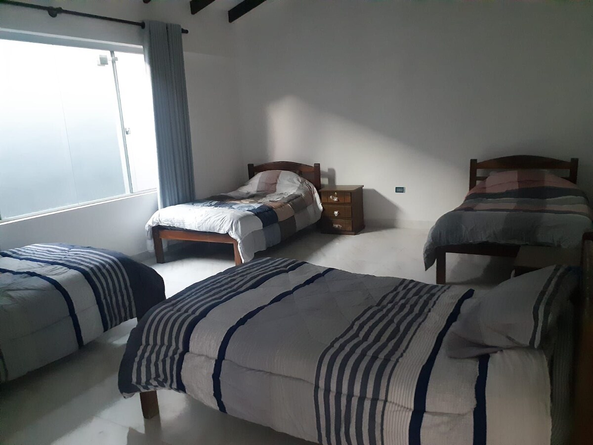 Dağlarla ve doğayla çevrili bu harika yerin keyfini tüm ailenizle, partnerinizle veya arkadaşlarınızla çıkarın. Presto'dan 3 km ve Sucre'den 90 km uzaktayız. Bağlantıyı kesmek, eğlenmek ve en iyi zamanı geçirmek için ideal. Özel banyosu, donanımlı mutfağı, yüzme havuzu, oyun odası, ateş çukuru, yürüyüş parkuru, bahçe, hamakları, zipline'ı ve çok daha fazlası olan odalarımız var. Ayrıca büyülü ve benzersiz bir yer olan ANMI El Palmar Rezervi'ne turlar da sunuyoruz.