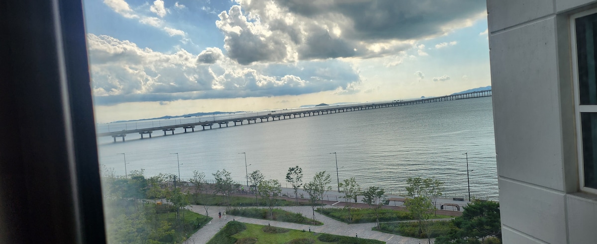 Bal kabağı evi/deniz kenarı parkı Incheon Köprüsü manzarası/şık çift katlı yapı/sessiz ve huzurlu çevre