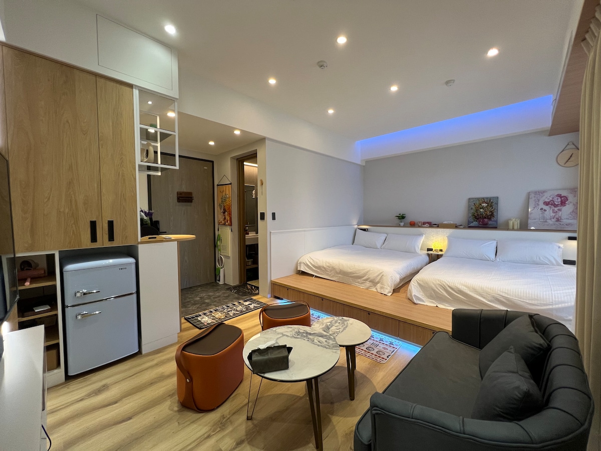 Yilan Jiaoxi Hot Springs Cozy Suite Binanın orta katı 4 kişiye kadar konaklayabilir İki Dört Kişilik Oda Parkın yanındaki doğal kaplıca Yuwai oluğu