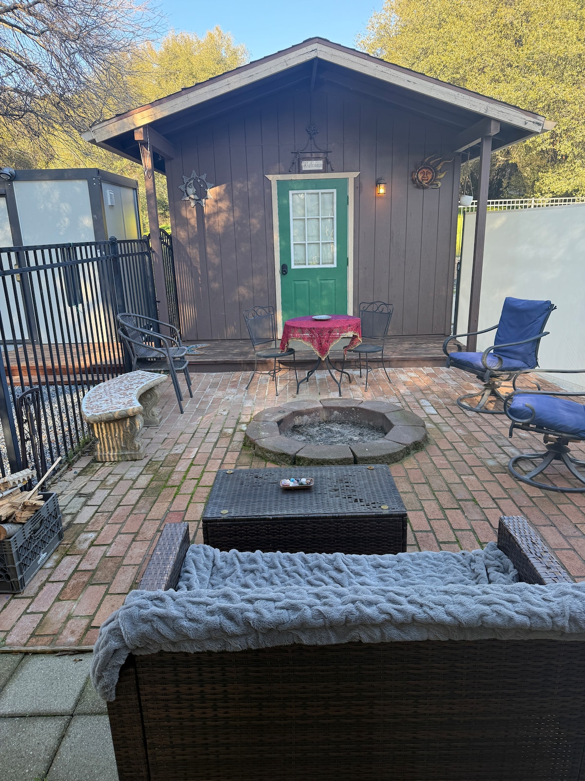 Küçük bir batı kasabasında rahat, özel bir misafir evi. Kendi mutfağınız, hamak, 1 queen yatak, 1 ikiz yatak (xs), kablosuz internet bağlantısı, TV/Netflix, klima, kendi ayrı girişiniz ve 4. misafir için isteğe bağlı beşik yatağı olacak. Kulübe iyi döşenmiş, temiz, yeni inşa edilmiş ve harika bir gece uykusu için sessiz bir bölgede. Şarap imalathanelerini, çevredeki tarihi kasabaları, Shaver Gölü'nü, Yosemite'yi ziyaret edin. Kaliforniya'nın merkezinde yer alan bu yer, Milli Parklar, plajlar ve daha büyük şehirlere doğru devam eden seyahatleriniz için ideal bir yerdir.