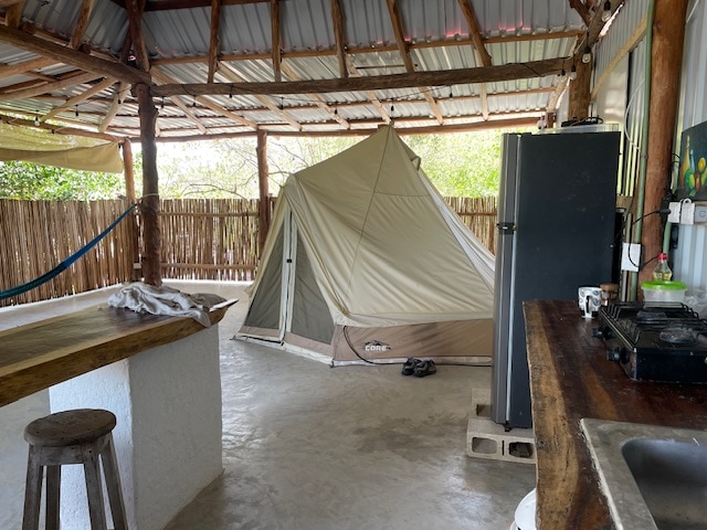 Ortak bir örtülü çatı altında kamp alanı