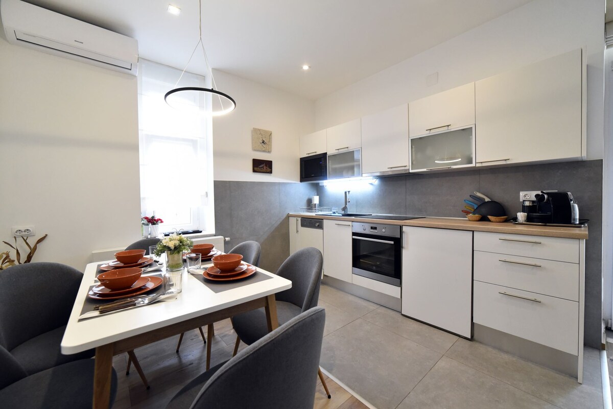 Hırvatistan'ın başkenti Zagreb'in göbeğine hoş geldiniz! Zagreb'in tam göbeğinde büyük teraslı ve özel otoparklı lüks bir daire bulunmaktadır. Tüm turistik yerler yakındır, bu nedenle toplu taşıma araçlarına gerek yoktur ve ücretsiz otopark dahildir. İki büyük yatak odası, mutfaklı geniş oturma odası, teras, duşakabinli banyo ve saunası olan geniş bir dairedir. Anahtar kutum var ve rezervasyonunuz üzerine PIN kodu ve talimatları vereceğim.