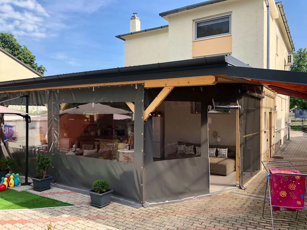 Plajlara, dağlara ve Balaton Gölü'ne yeterince yakınken kırsalın tadını çıkarın. Hévíz Gölü'ne arabayla sadece 11 dakika mesafededir, dünyanın yüzülebilir en büyük termal gölüdür. Büyük bahçeli jakuzi ve barbekü, aileler veya arkadaşlar için mükemmel bir konaklama yeri. Gyenesdiás'ta 2. katta 2 yatak odalı daire. "Airbnb ile çok seyahat ettik ve deneyimliyiz ve en çok sevdiğimiz yerlerden biriydi!" (Yoav&Tamar, 2022)