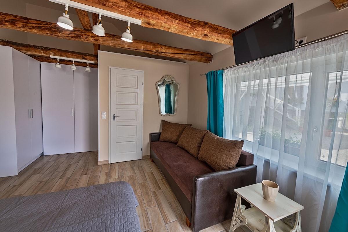 One-room, 2 person apartment in the Kőkövön Vendégáz, Garden Inn. The apartment has a fully equipped private kitchen and bathroom. The room has a separate entrance and opens from the common terrace. . The guest house has a large garden with barn, pond, grill&fireplace.