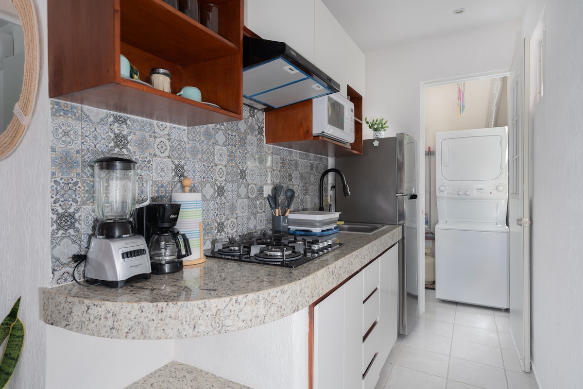 Bu olağanüstü daire Altar Binası'nın bir parçasıdır. Birçok eski Meksika antik parçasıyla keyifli iç tasarım, tekstil kalitesi, yemyeşil bahçe, iyi donanımlı mutfak ve bu alanı bu kadar özel kılan diğer birçok ayrıntı. Tulum'daki popüler La Veleta bölgesinde yer alan, plaja arabayla sadece 8 dakika mesafede ve 230 mb fiber optik internet bağlantısıyla donatılmış bu yer, Tulum'da konaklamak için mükemmel bir yer, ayrıca buradan çalışabilir veya sadece dinlenebilirsiniz.