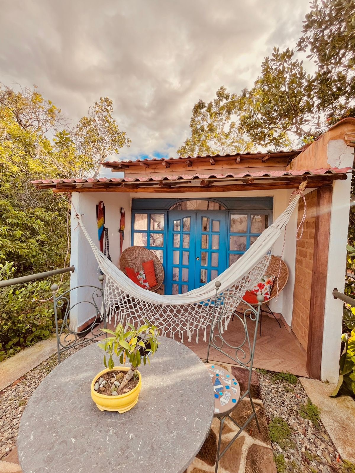 Ubicada a una cuadra del parque principal, esta casa conserva la arquitectura de una casa de pueblo, colorida, acabados rústicos, llena de plantas y flores. Disfruta de este espacio tranquilo, amplio y sereno, con dos patios al aire libre para compartir con tu familia y amigos. El barrio es tranquilo, seguro, residencial (poco comercio), puedes dejar tu vehículo frente a la casa. Disfruta del clima y cordialidad de Zapatoca. Tenemos horario de check in y check out flexible, sin costo adicional.
