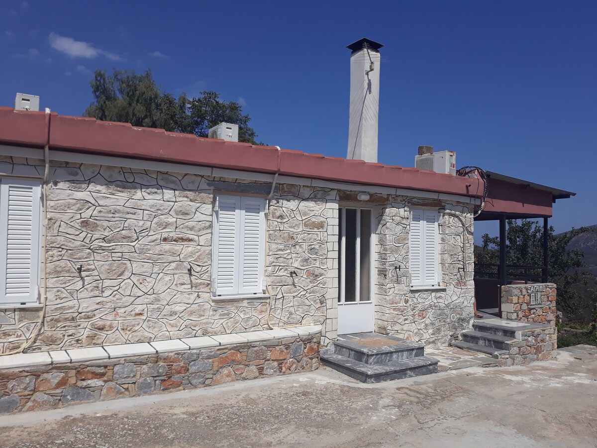 The house is about 40sq.m, with 1 bedroom with dooble bed, living room with two double sofabeds, 1 small kitchen, 1 bathroom and yard-balcony with beautiful sea view. The house has also an outdoor shower and large parking area. The view is amazing. The blue and crystal clean water of the Aegean sea is on your sight from almost everywhere, even from your bed!