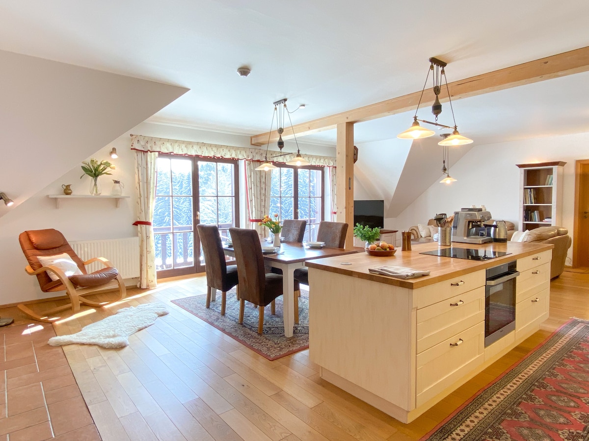 Bavyera Ormanı'nda 6 kişilik tatil dairesi mutfak banyo balkon