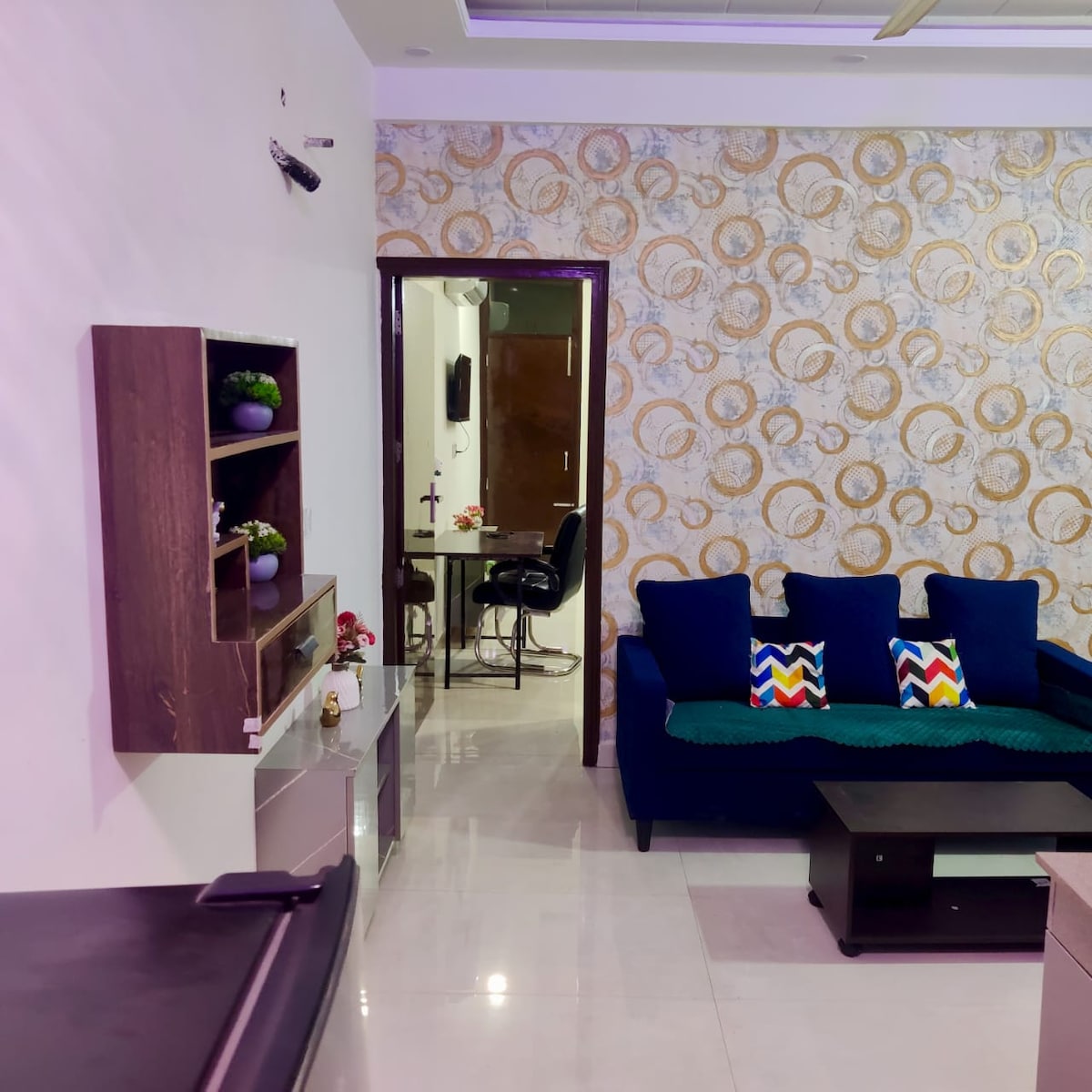 Welcome to Urban Oasis - Luxury 1 BHK apartment in Zirakpur! Relax in style in our opulent home, adorned with a stunning fan chandelier ( with inbuilt speakers) that adds a touch of luxury to this already impressive space. This secure and serene locality offers free parking and is conveniently located near the Ambala-Chandigarh Highway. Enjoy easy access to Chandigarh city center (15 minutes), Chandigarh Airport (15 minutes), and the main bus stand and railway station (10 min).