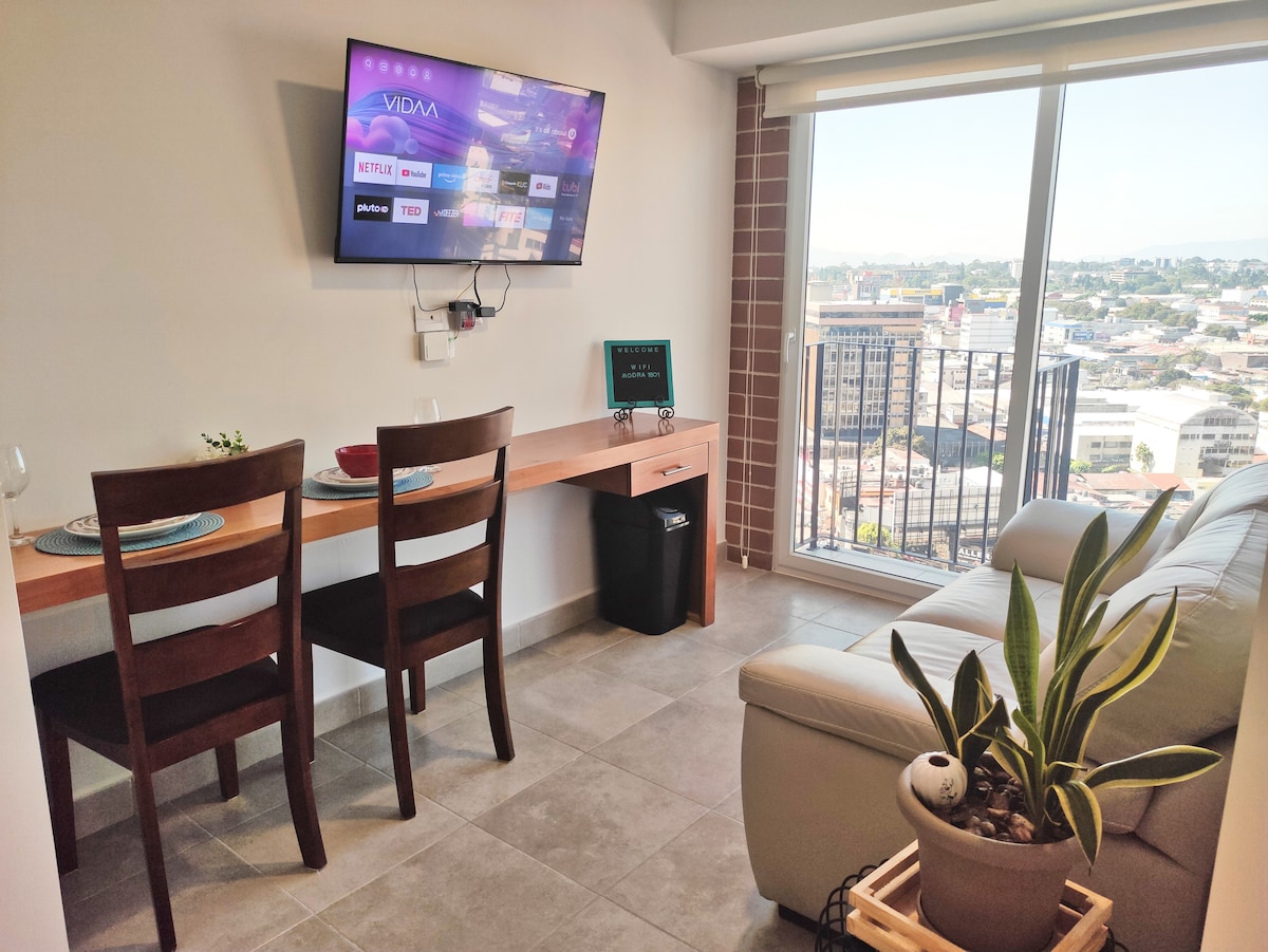 Feel the experience of staying in a brand new loft apartment in the beautiful country of Guatemala. Our apartment with modern, elegant touches that accompany an unparalleled view, provide calm and tranquility in one of the most exclusive areas of our country. You will have the opportunity to stay near shopping centers, restaurants, the hotel zone and a few minutes from the international airport.